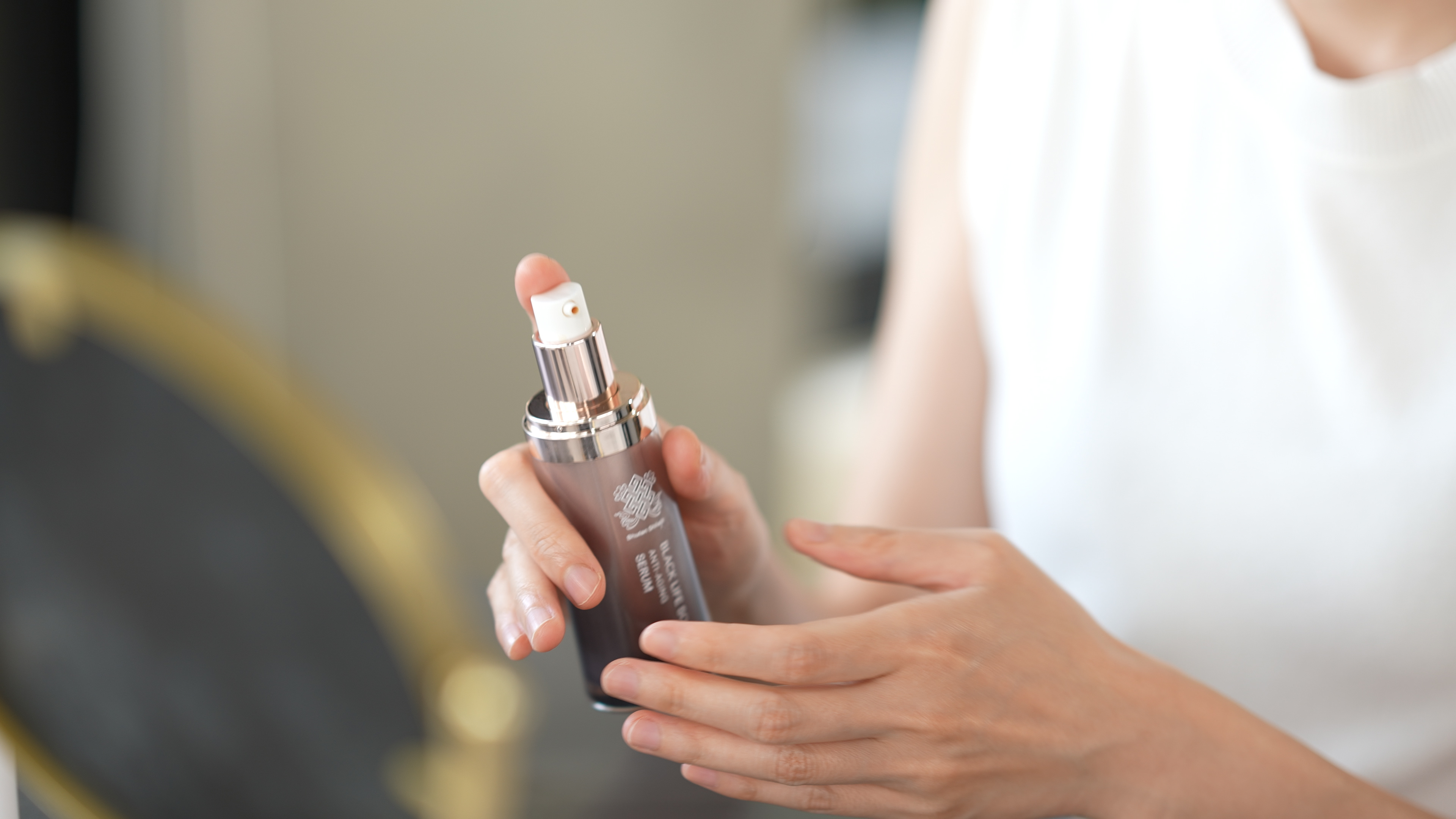 高濃度不丹喜來芝,濃濃的茶色精華液體,來自6500萬年前的礦物質,細小分子讓肌膚可以輕鬆地吸收,睡前五分鐘就能簡單完成保養,讓我能夠把時間更專心在更多生活事物上。