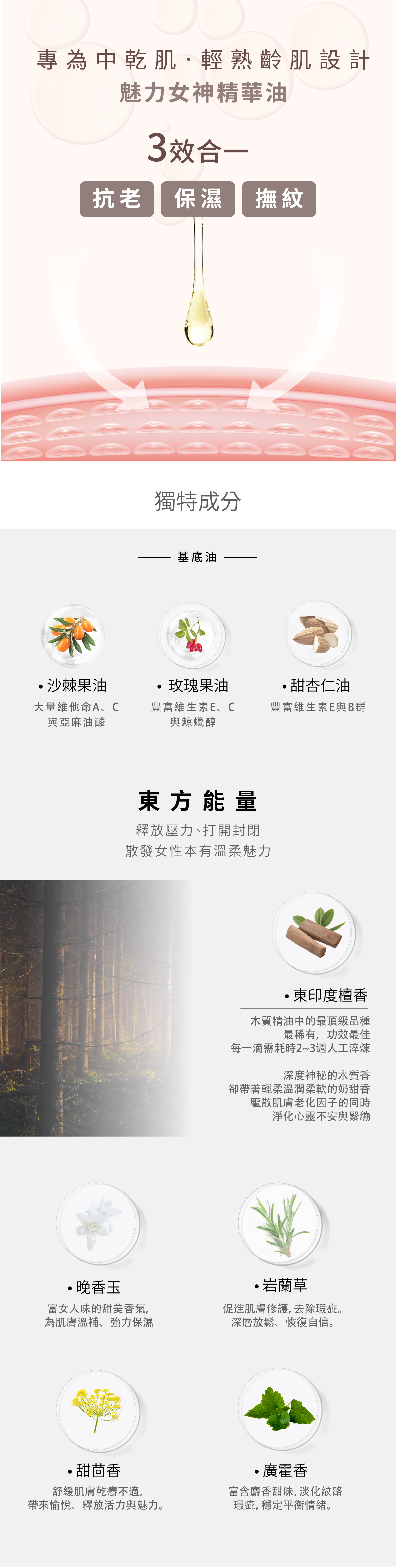 精選有機沙棘果、玫瑰果油,阿育吠陀抗老亮白配方,立即滋潤乾燥,亮白肌膚,恢復彈性。
