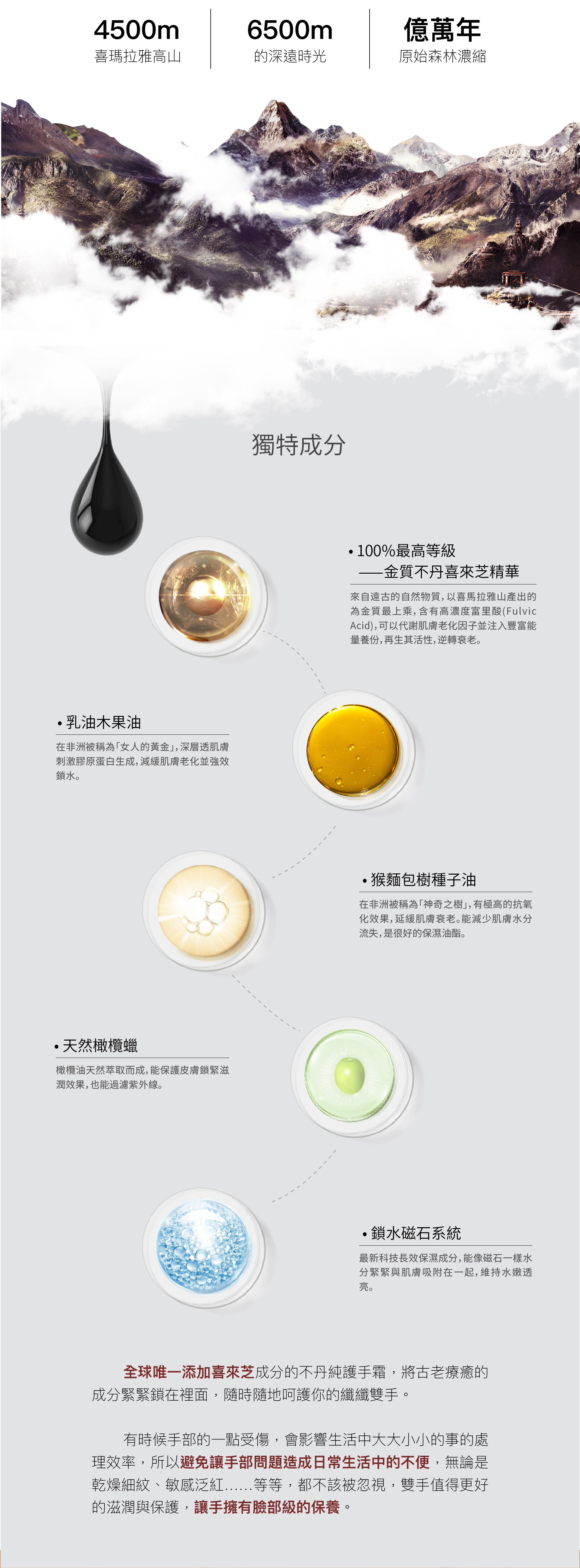 含不丹喜來芝,搭配乳油木果油等優質油脂與磁石鎖水系統,耐洗長效保水,修護乾裂、潤澤細紋彈力並淡化斑點。